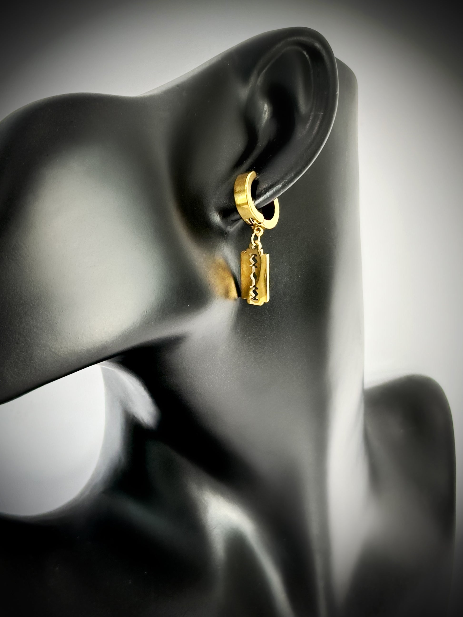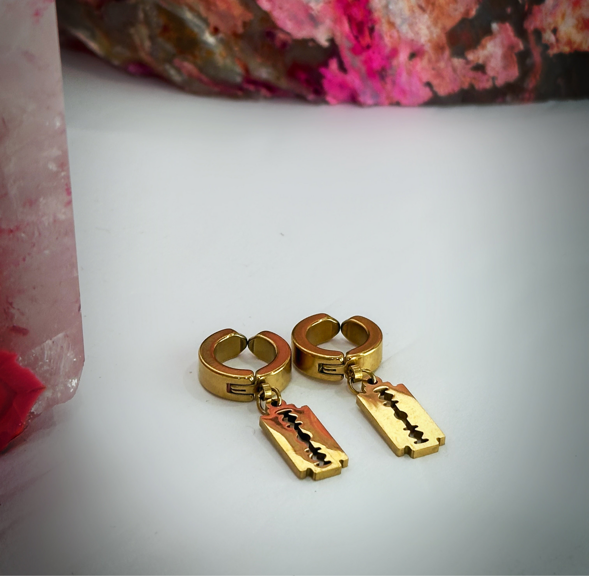Introducing the Blade Earrings: a daring accessory for those who embrace bold style. Featuring a sleek, razor blade-inspired design, these clip-on earrings make a sharp statement with a minimalist edge. Lightweight and easy to wear, they're perfect for adding a touch of rebellious chic to any outfit. Pair with the matching necklace for a complete, cutting-edge look.